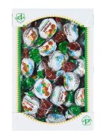Состав: чернослив сушеный, глазурь (сахар, заменитель какао масла нетемперируемый лауринового типа (фракция гидрогенизированного пальмоядрового масла), эмульгаторы (соевый лецитин, Е492), какао порошок, ароматизатор «Ванилин»), сахар, фундук сушеный