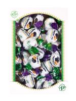 Состав: чернослив сушеный, глазурь (сахар, заменитель какао масла нетемперируемый лауринового типа (фракция гидрогенизированного пальмоядрового масла), эмульгаторы (соевый лецитин, Е492), какао порошок, ароматизатор «Ванилин»), сахар, ядра грецкого ореха.