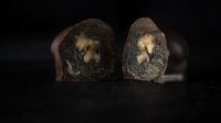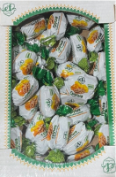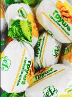 Состав: груша сушеная, глазурь (сахар, заменитель какао масла нетемперируемый лауринового типа (фракция гидрогенизированного пальмоядрового масла), эмульгаторы (соевый лецитин, Е492), какао порошок, ароматизатор «Ванилин»), сахар, ядра грецкого ореха.