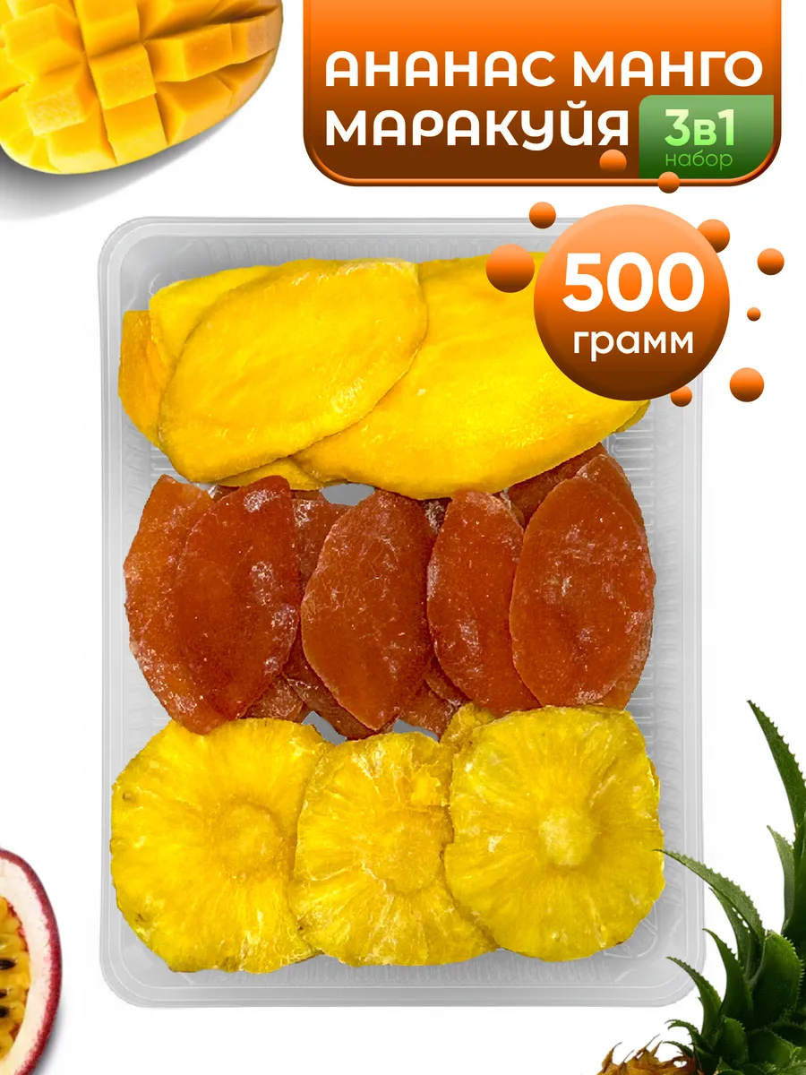 МИКС (манго, маракуйя, ананас) сушеные без сахара Kong, 500гр