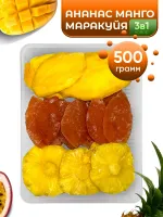 МИКС (манго, маракуйя, ананас) сушеные без сахара Kong, 500гр